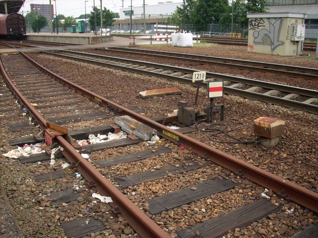 stop-/ontspoorblok. Het is duidelijk te zien dat dit spoor al lang niet